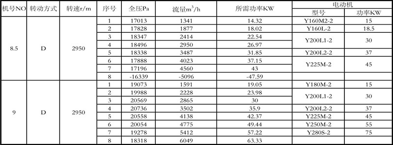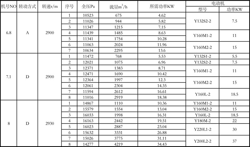 2、形式:8-09風機為單吸入,機號有No.6.8A、 7.1 D、 8D、 8.5D、 9D共五種。