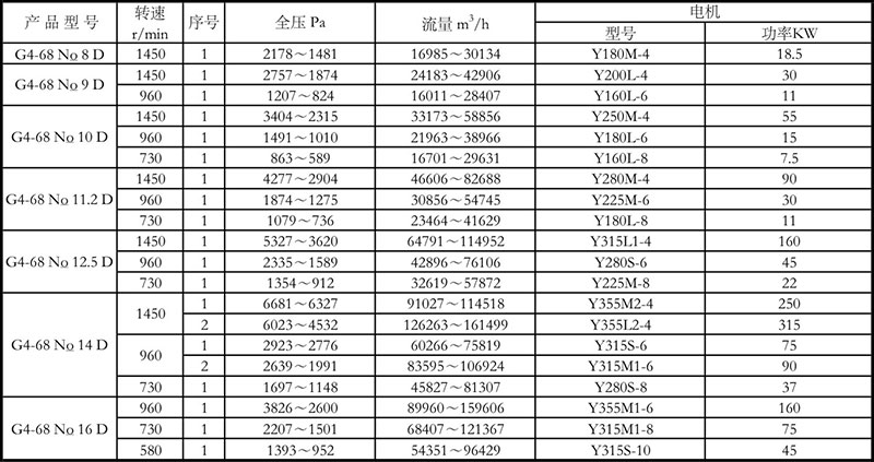 (1)通風(fēng)機(jī)與引風(fēng)機(jī)均制成單吸入,各有No.8-16共7個機(jī)號。