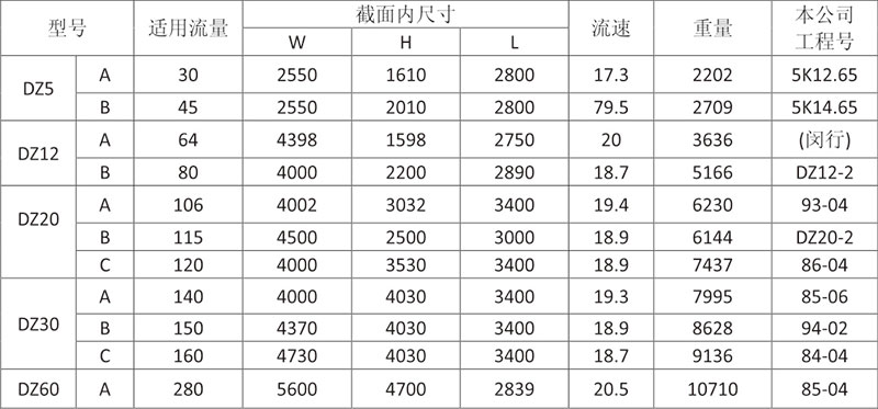 DZ型電站送風(fēng)機(jī)消聲器規(guī)格選用表